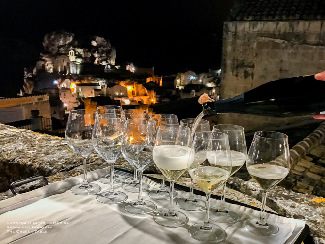 It’s modernity and minimalist scheme strikes a beautiful synthesis of refinement. The palace is divided into four spaces that accommodates 32, the main dining room, the cellar, the private lounge and the terrace (open in summer for outside seating) with one of the most spectacular views of Matera.
